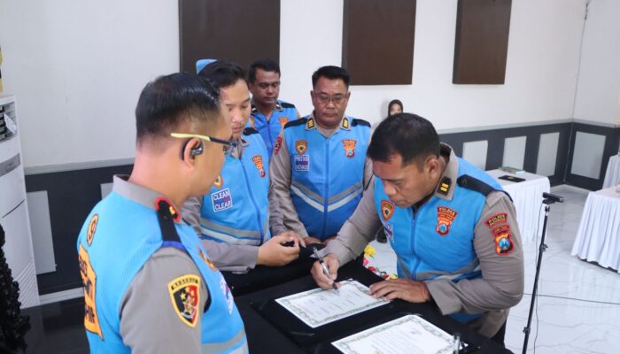 Kegiatan penandatanganan fakta integritas digelar secara serentak melalui Zoom dan diikuti seluruh jajaran Polres se-Jawa Timur dari wilayah masing-masing.