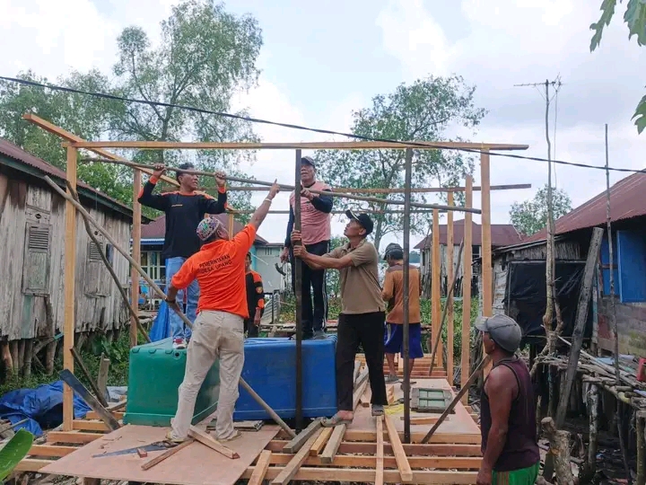 Divisinews.com // Banyuasin – Giat Gotong-royong pemerintah desa Upang Kecamatan Air Salek kabupaten Banyuasin bersama Warga dalam Merenovasi Ulang Rumah,”Soliman, yang ambruk akibat hujan deras serta kondisi rumah Lapuk di Rt 014 dusun IV desa Upang pada tanggal 15 Desember 2024 lalu,