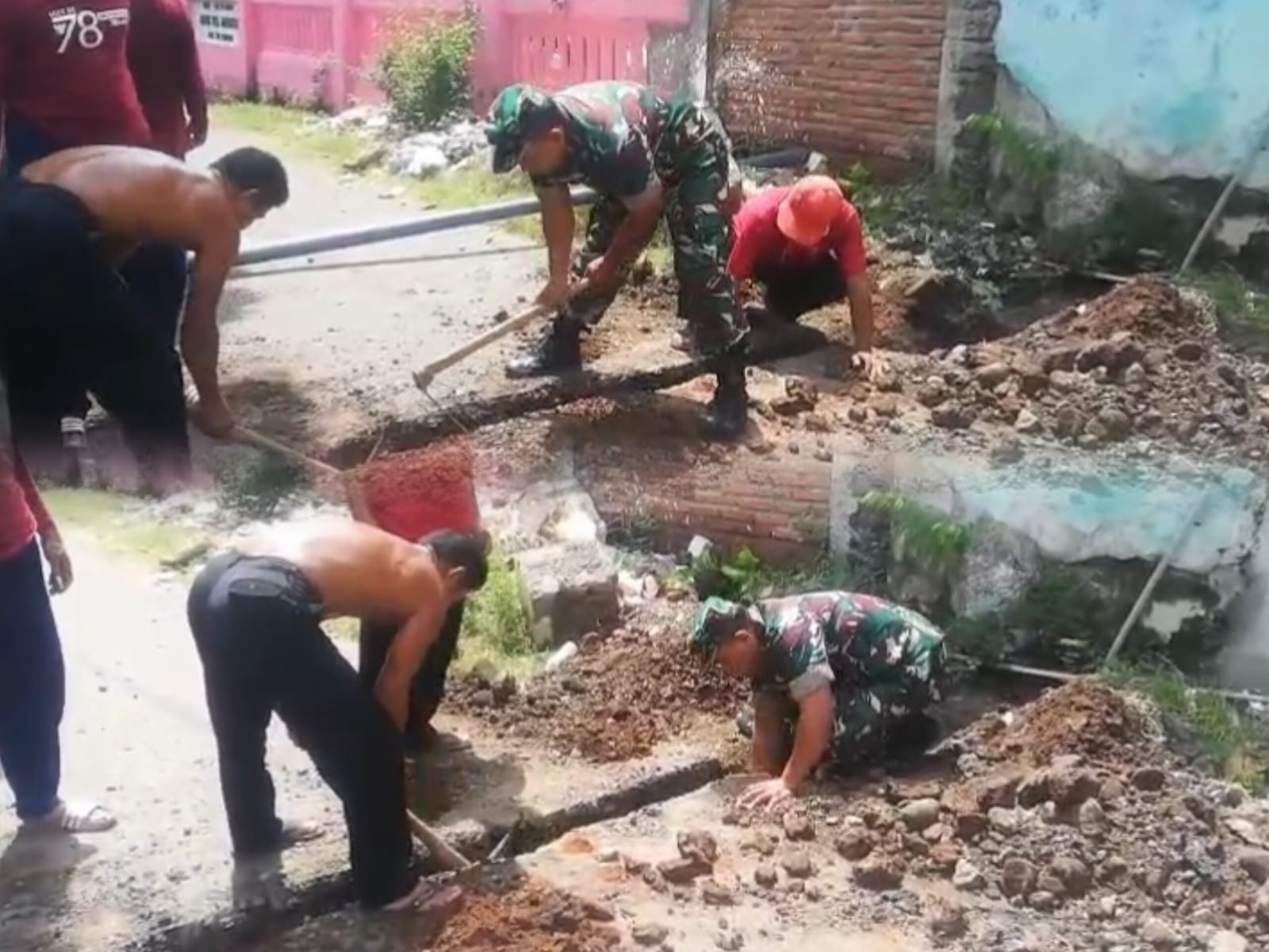 Kolaborasi yang solid antara aparat TNI dan puluhan warga menunjukkan semangat gotong royong yang masih mengakar kuat di tengah masyarakat.