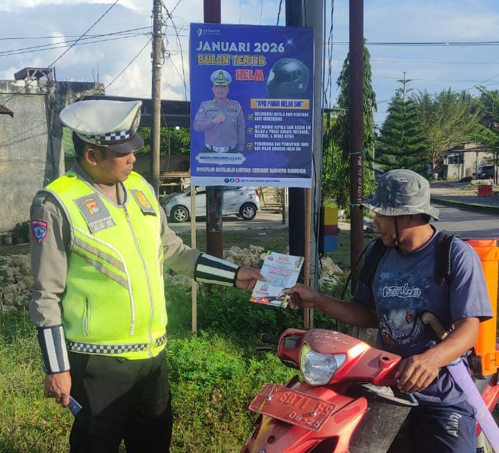 Pasangkayu – Dalam rangka meningkatkan kesadaran dan keselamatan berlalu lintas di wilayah hukum Polres Pasangkayu, Unit Kamsel Sat Lantas Polres Pasangkayu melaksanakan kegiatan himbauan tertib penggunaan helm kepada para pengendara, Rabu (14/01/2026) sekitar pukul 08.00 WITA.