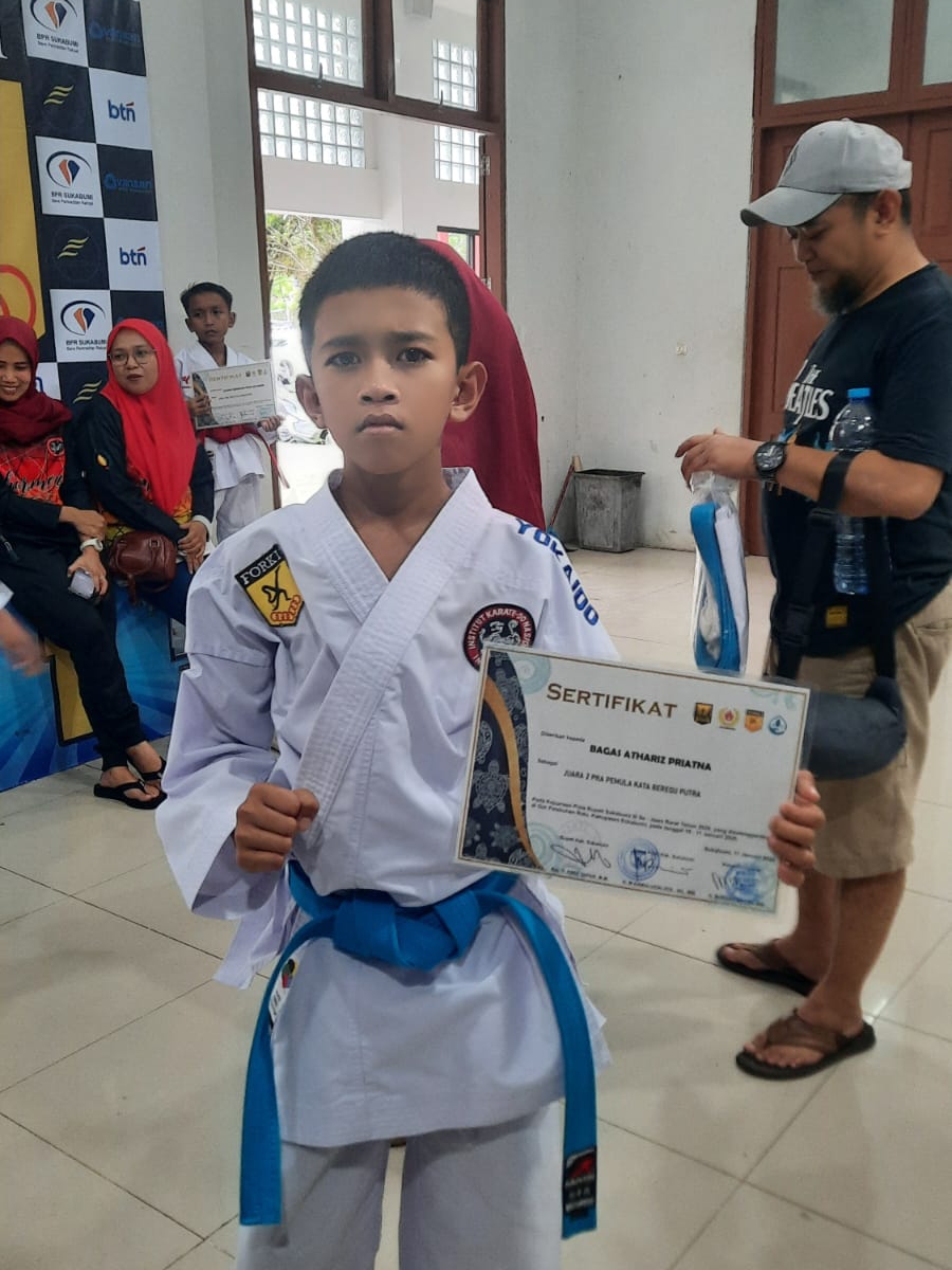 Bagas Athariz Priatna menunjukkan penampilan yang disiplin dan penuh semangat sepanjang pertandingan. Dengan teknik kata yang baik, ketenangan gerak, serta kekompakan tim, Bagas mampu bersaing hingga babak final dan meraih posisi kedua terbaik.
