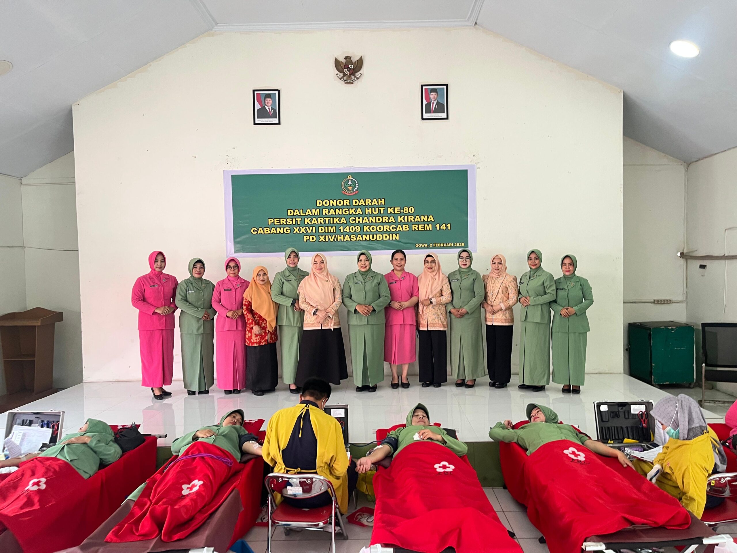 Divisinews.com//Gowa,- Wakil Ketua Bhayangkari Cabang Gowa, Ny. Erna Gani, bersama jajaran pengurus Bhayangkari Cabang Gowa mengikuti kegiatan Donor Darah dalam rangka Hari Ulang Tahun (HUT) ke-80 Persit Kartika Chandra Kirana Cabang XXVI Dim 1409 Koorcab Rem 141 PD XIV Hasanuddin, yang dilaksanakan di Aula Kodim 1409/Gowa, Senin (2/2/2026).