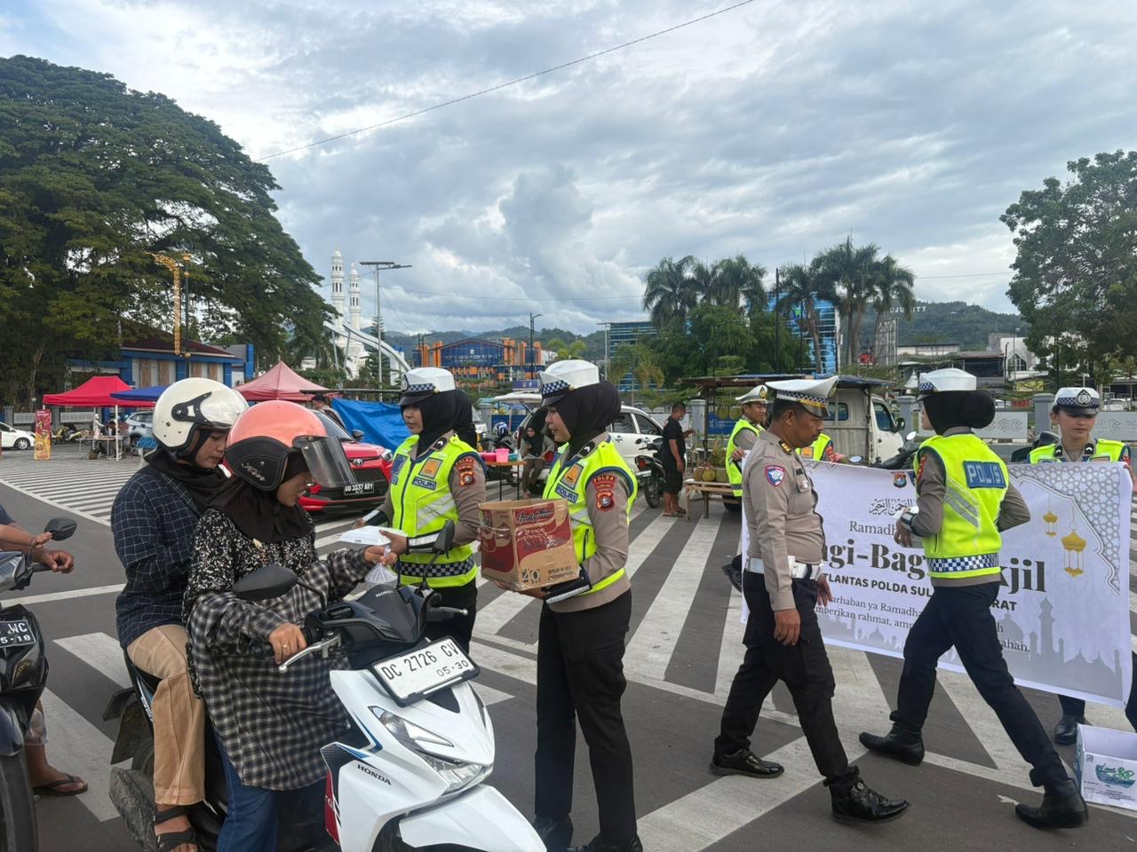 Sulawesi Barat – Dalam suasana penuh berkah bulan Ramadhan, Direktorat Lalu Lintas Polda Sulawesi Barat menggabungkan kepedulian sosial dengan kampanye keselamatan berlalu lintas melalui kegiatan pembagian takjil kepada para pengendara, Jumat (20/2/26).