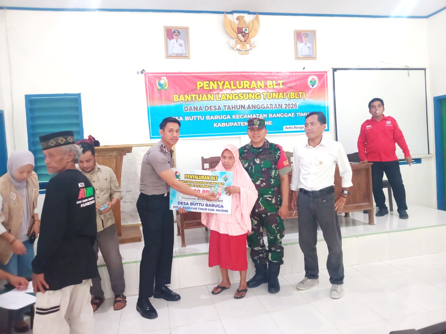 Kegiatan penyaluran bantuan tersebut berlangsung tertib dan lancar dengan dihadiri oleh Kepala Desa Buttu Baruga, Ketua BPD, Babinsa, pendamping kecamatan, pendamping desa, serta para penerima manfaat. Kehadiran aparat keamanan, khususnya Bhabinkamtibmas, menjadi bagian penting dalam memastikan proses penyaluran berjalan aman, transparan, dan tepat sasaran.