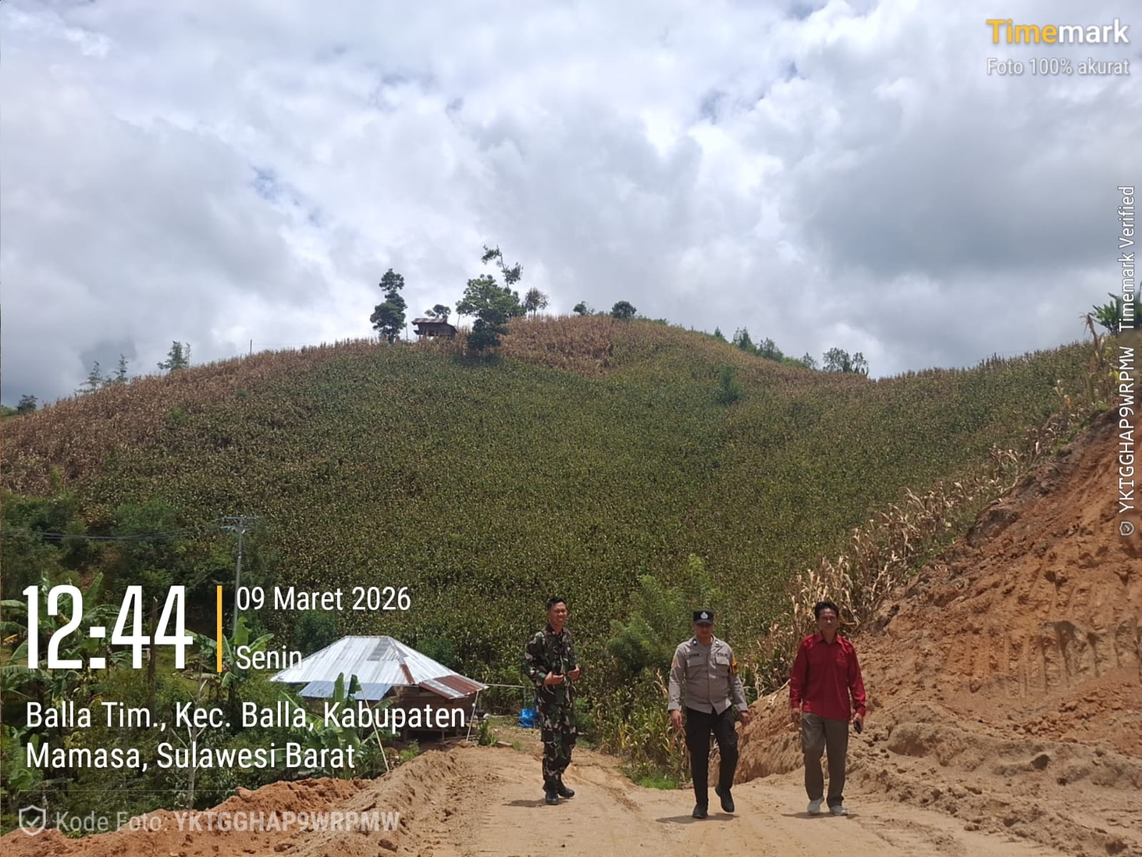 MAMASA–Dalam rangka memantau perkembangan lahan pertanian warga binaan, Bhabinkamtibmas melaksanakan kegiatan monitoring kebun jagung di wilayah binaan pada Senin, sekitar pukul 12.40 WITA. Kegiatan tersebut dilaksanakan di Dusun Bamba Tado’, Desa Balla Timur, Kecamatan Balla, Kabupaten Mamasa, 09 Maret 2026