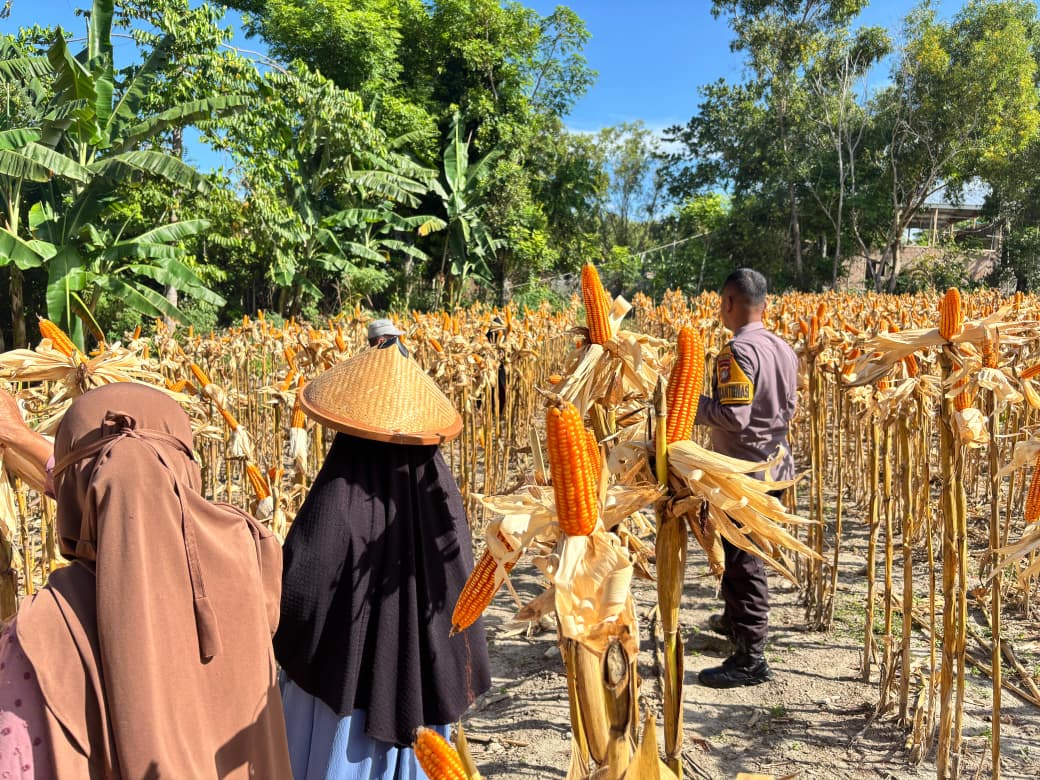 Pada Senin (30/3/26), Bripka Ahmadi bersama Kelompok Tani Sipatuo melaksanakan panen jagung di Lingkungan Buttu, Kelurahan Tande, Kecamatan Banggae Timur, Kabupaten Majene. Panen tersebut berlangsung di lahan seluas kurang lebih 1 hektare dan berhasil menghasilkan sekitar 1 ton jagung.