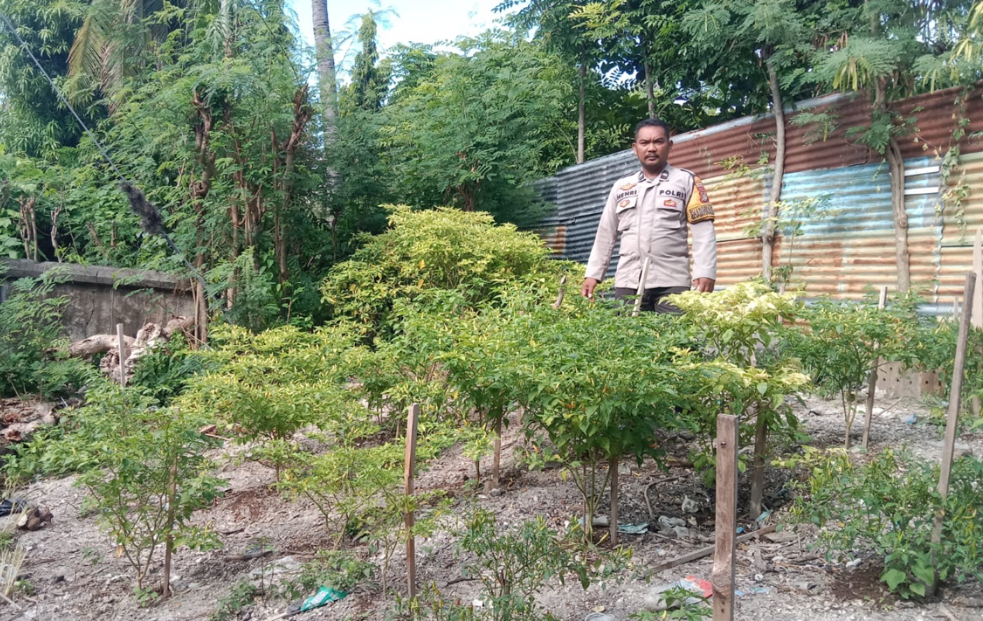 Dalam kegiatan tersebut, AIPDA Henri Suseno meninjau langsung budidaya tanaman cabai yang dikelola oleh warga setempat. Tanaman cabai dipilih karena merupakan salah satu komoditas penting yang memiliki nilai ekonomi tinggi serta menjadi kebutuhan pokok dalam rumah tangga sehari-hari.