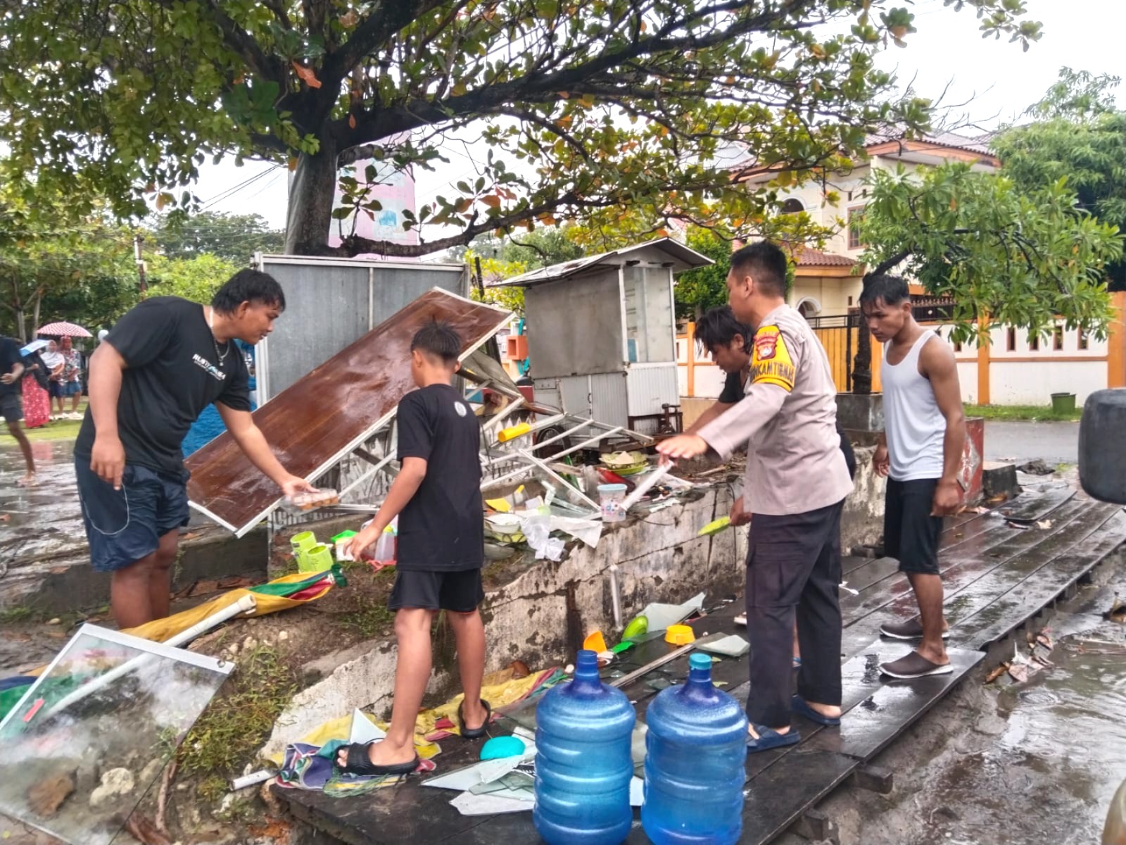 Selain memberikan bantuan langsung, Brigpol Aco juga menyampaikan imbauan kamtibmas kepada para pedagang agar selalu mengutamakan keselamatan. Ia mengingatkan agar tidak memaksakan diri berjualan saat kondisi cuaca tidak bersahabat, mengingat potensi angin kencang dan hujan lebat dapat membahayakan keselamatan jiwa maupun harta benda.