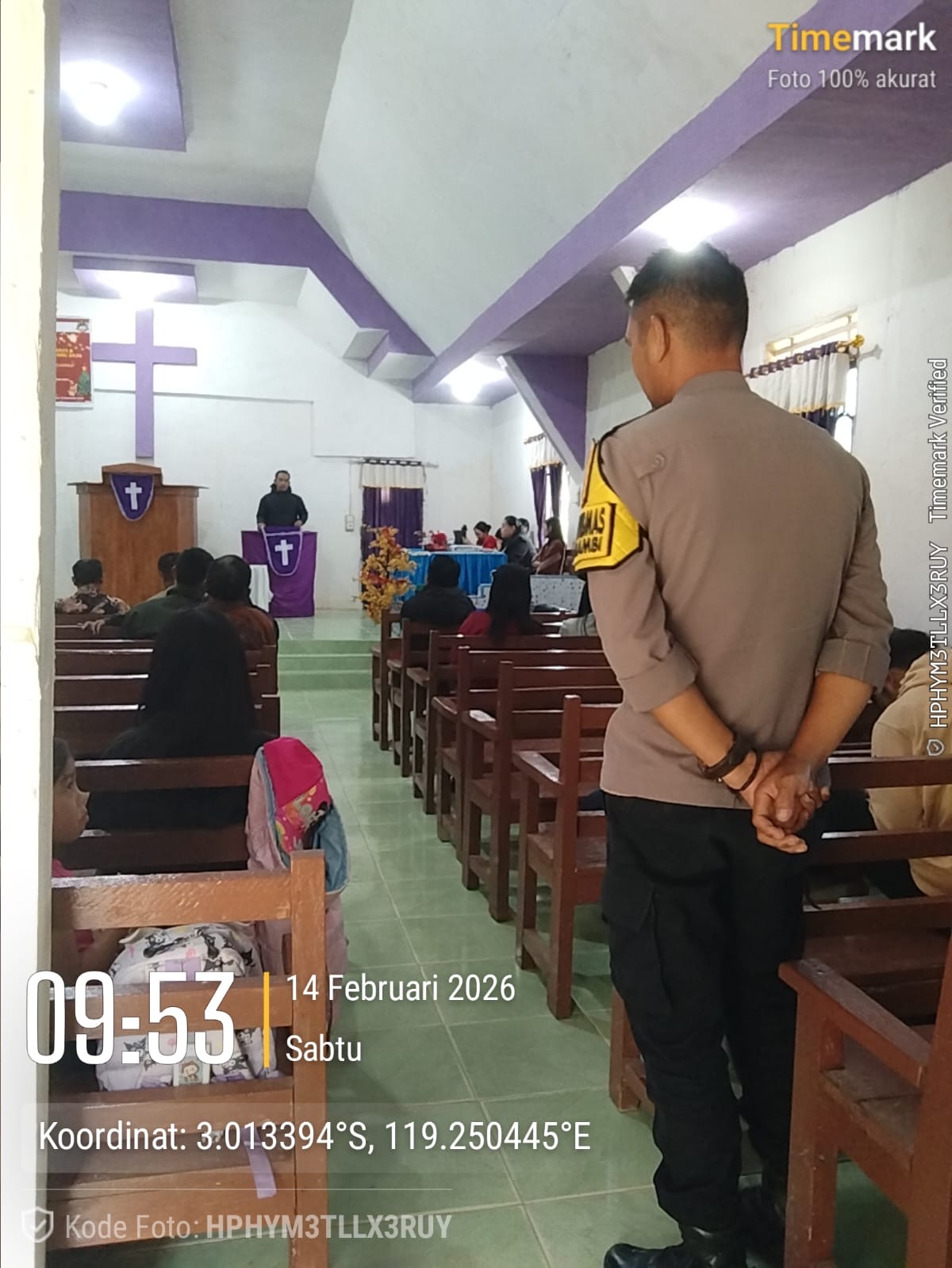 Divisinews.com, Mamasa–Dalam rangka menjaga situasi keamanan dan ketertiban masyarakat (Kamtibmas) tetap aman dan kondusif, Bhabinkamtibmas Polsek Mambi melaksanakan kegiatan sambang dan monitoring pada perayaan HUT GTM Klasis Sindagamanik II yang berlangsung di GTM Jemaat Pangka, Desa Ulumea, Kecamatan Mehalaan, Kabupaten Mamasa, Provinsi Sulawesi Barat, Sabtu sekitar pukul 09.00 WITA, 14 Februari 2026