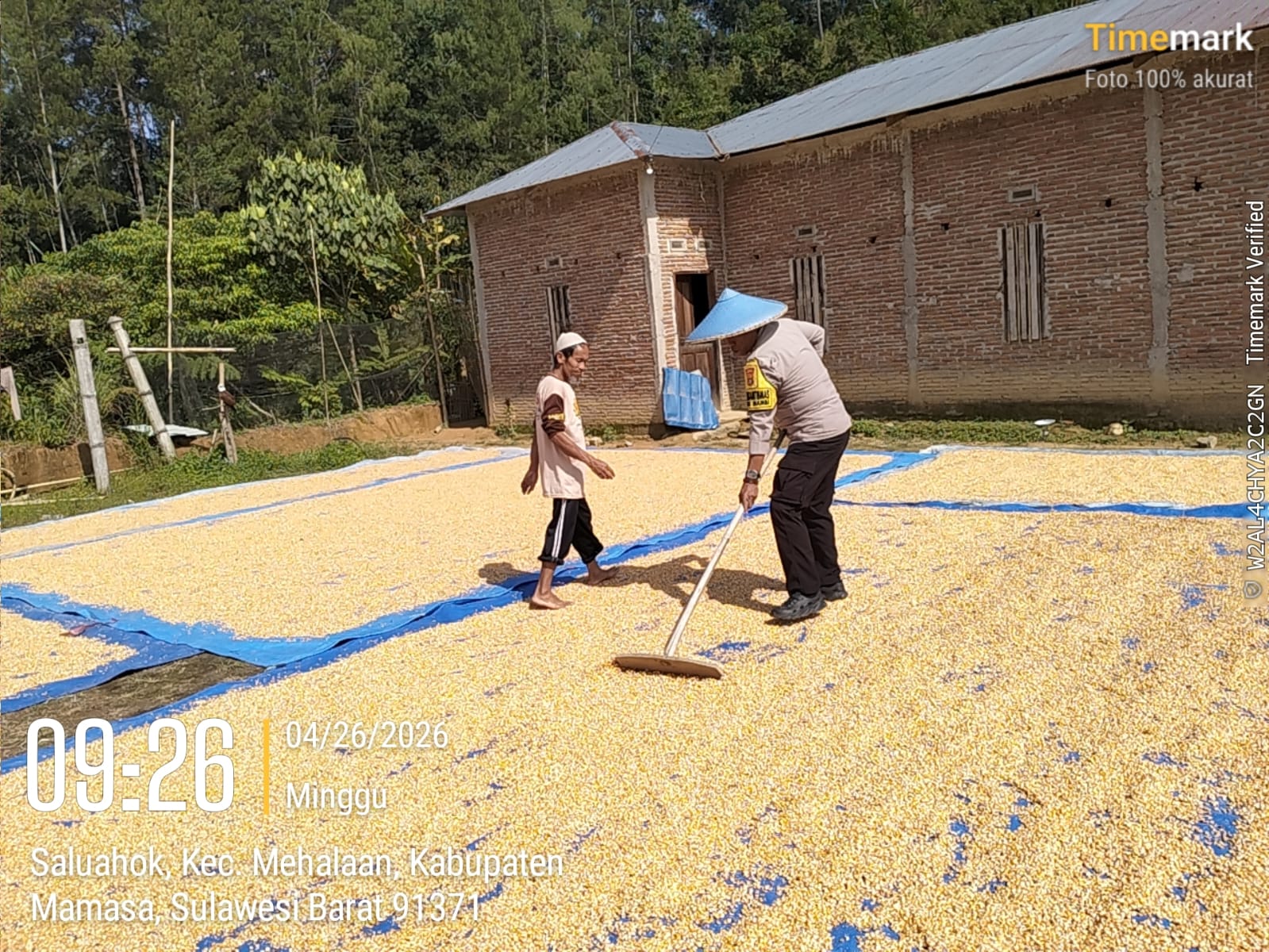MAMASA–Dalam rangka mendukung ketahanan pangan serta memastikan pendataan hasil pertanian masyarakat, personel Bhabinkamtibmas Polsek Mambi melaksanakan kegiatan monitoring panen jagung di wilayah binaannya, 26 April 2026