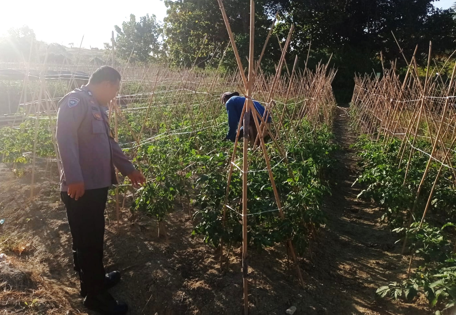 Bhabinkamtibmas Polsek Pamboang Pantau Lahan Tomat, Dukung Ketahanan Pangan di Desa Simbang