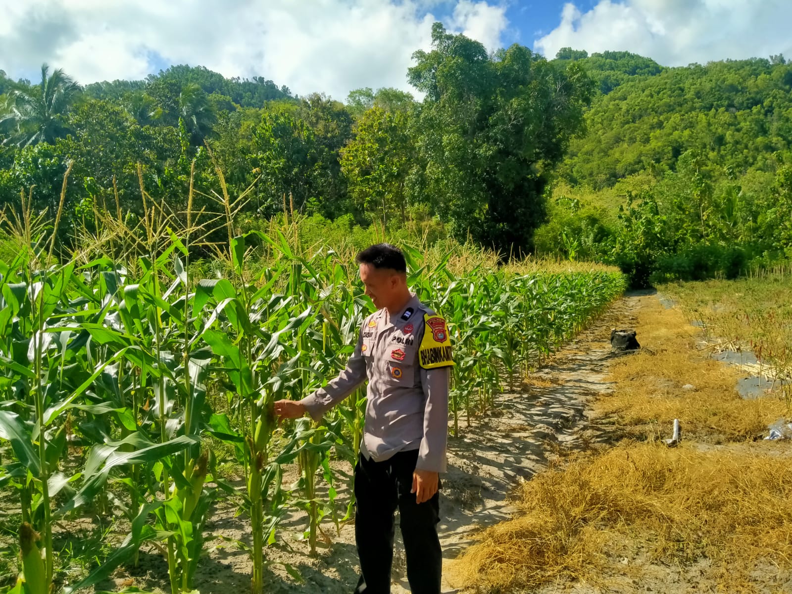 Bhabinkamtibmas Polsek Pamboang Pantau Tanaman Jagung Warga Kaida, Dukung Ketahanan Pangan