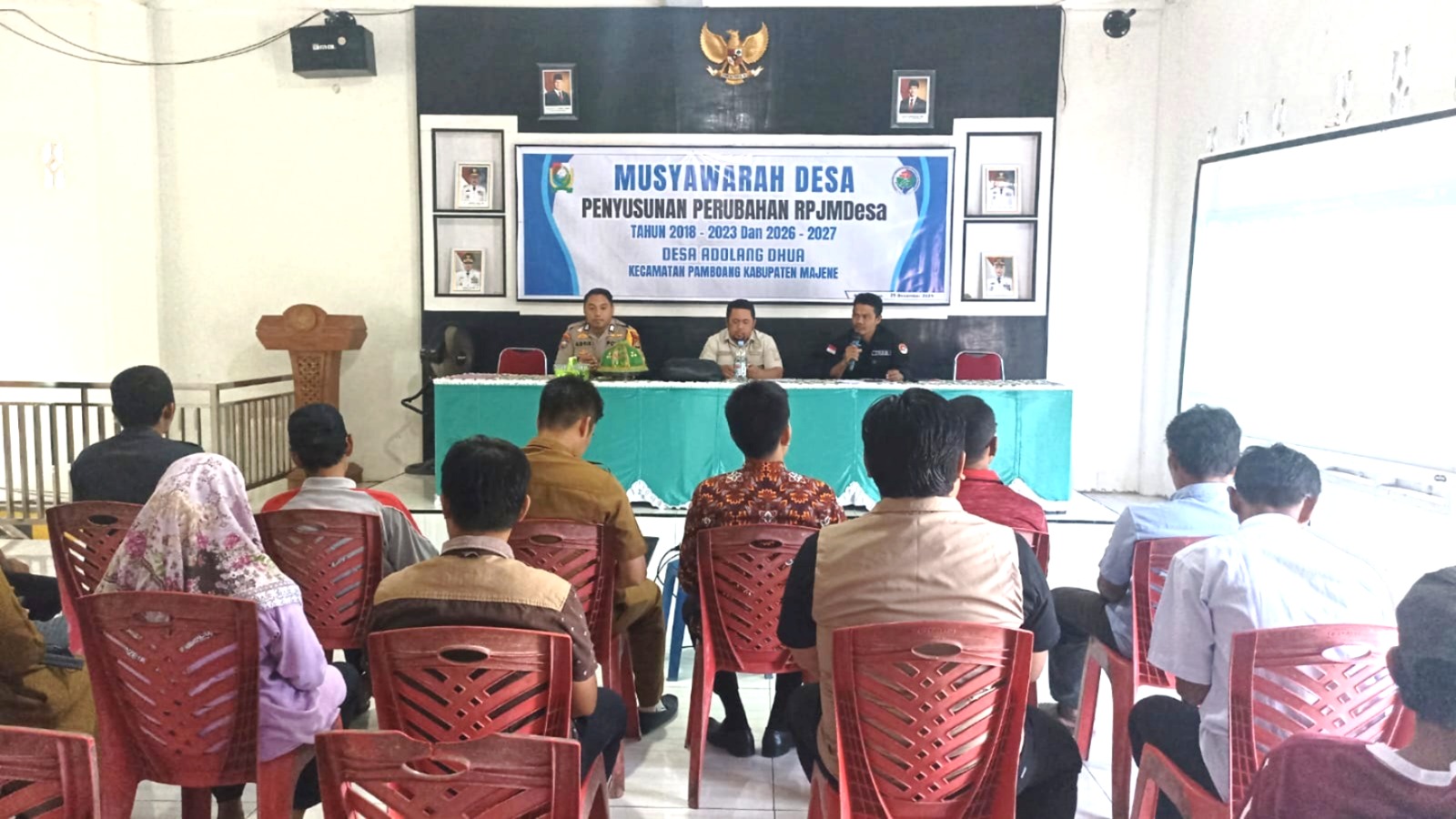 Majene – Dalam rangka mendukung perencanaan pembangunan desa yang transparan dan partisipatif, Bhabinkamtibmas Polsek Pamboang Polres Majene, Brigpol Adri Cahyadi, S.H., menghadiri kegiatan Musyawarah Desa Penyusunan Perubahan Rencana Pembangunan Jangka Menengah Desa (RPJMDesa) Tahun 2027 yang digelar di Aula Kantor Desa Adolang Dhua, Kecamatan Pamboang, Kabupaten Majene, Selasa (3/2/26).