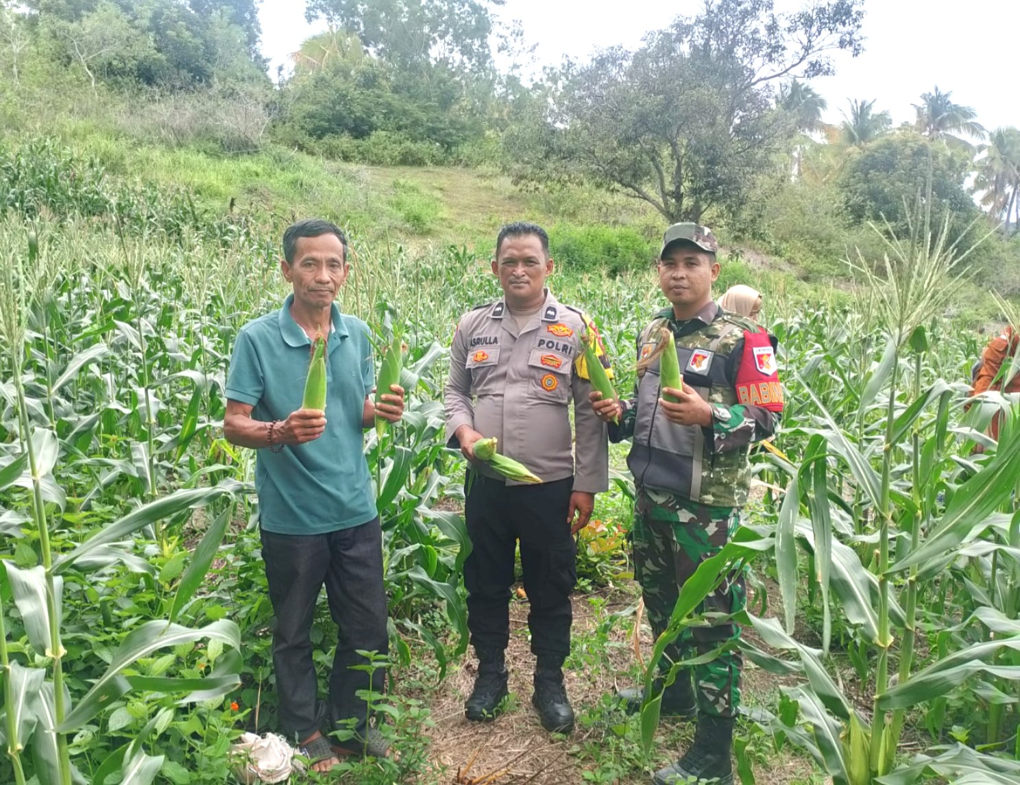 Bhabinkamtibmas Polsek Pamboang Tinjau Kebun Jagung Manis di Dusun Puare, Dukung Ketahanan Pangan Nasional