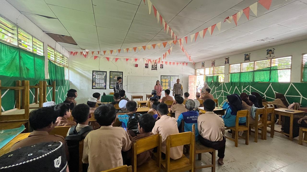 Sementara itu, Bhabinkamtibmas Bripka Hasrat M. memberikan pesan-pesan kamtibmas kepada para siswa, di antaranya agar selalu bersyukur atas perhatian pemerintah, menghormati guru dan sesama teman, menghindari perilaku bullying, serta menjauhi perbuatan menyimpang seperti merokok dan tawuran.