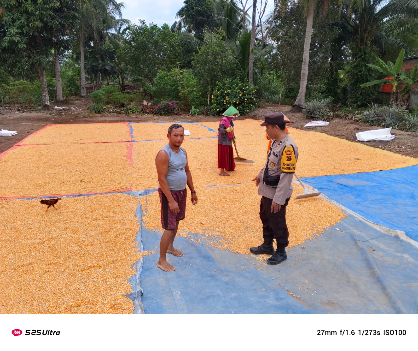 Pada pukul 10.30 WIB, Aipda J. Silitonga turun langsung ke lokasi penjemuran jagung milik petani setempat, Kegiatan berfokus pada dua hal utama pengecekan terhadap proses penjemuran hasil panen untuk menjaga kualitas komoditas, dan sosialisasi harga gabah jagung yang mengacu pada Instruksi Presiden (Inpres) Nomor 10 Tahun 2025.