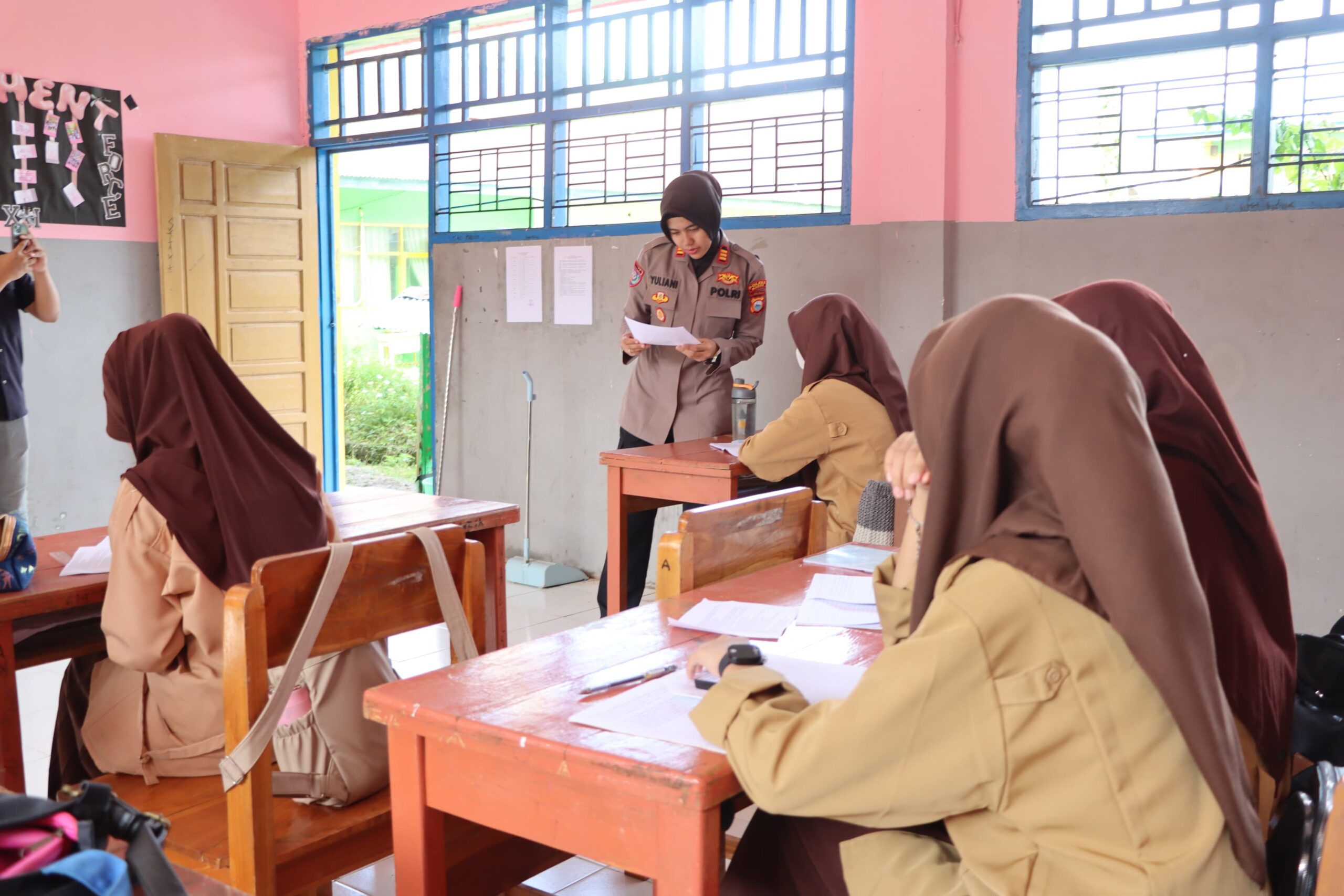 “Disekolah sekolah maupun lingkungan pesantren rentan terjadi tindakan bullying atau perundungan, olehnya itu kita hadir disini untuk mengajak dan mengedukasi kepada adik adik pelajar agar lebih memahami bahaya bullying serta pentingnya kesadaran hukum.” Ujarnya.