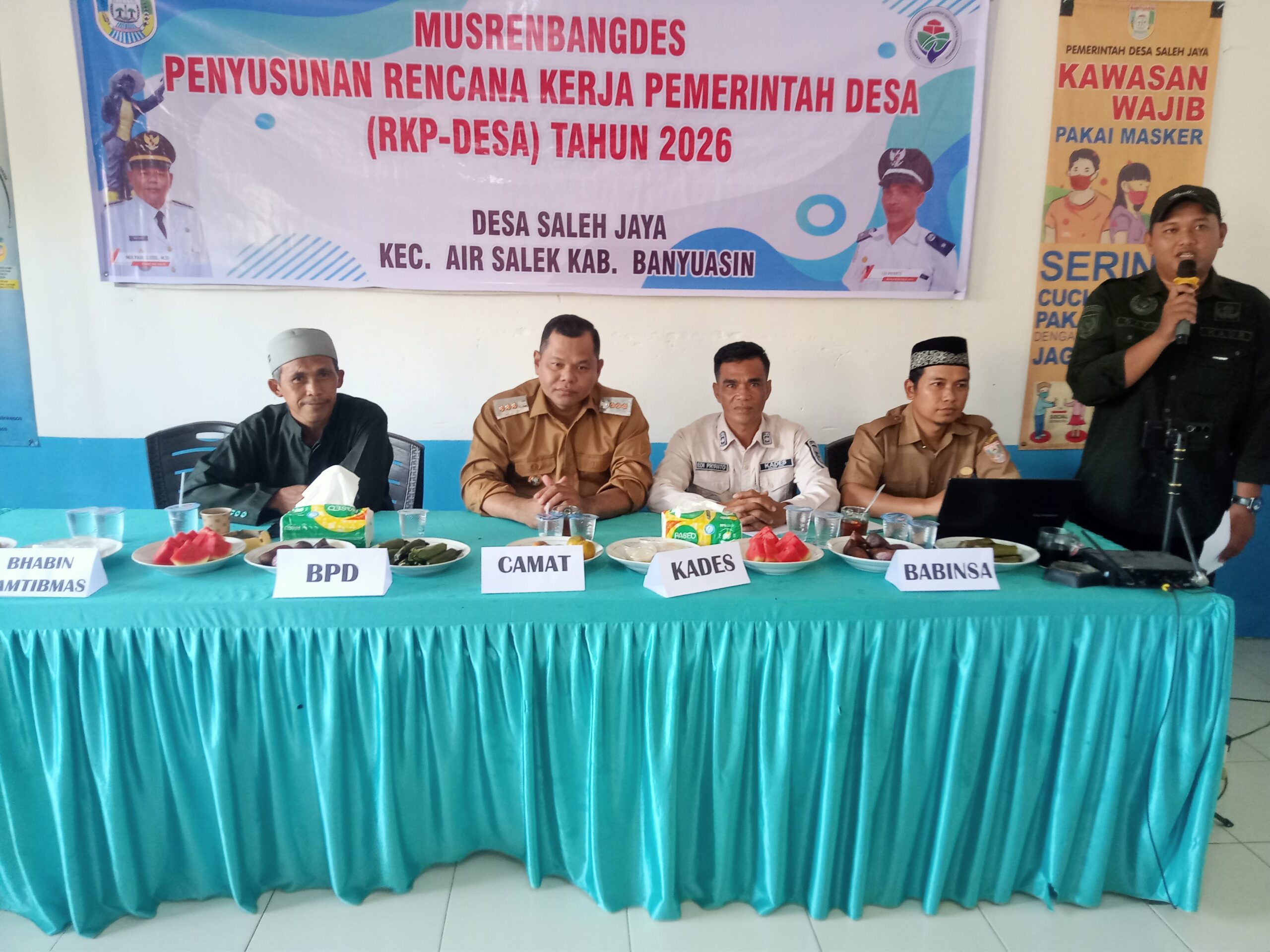 Kegiatan ini dihadiri oleh Kepala Desa Saleh Jaya, Ketua dan Anggota BPD, Perangkat Desa, Pendamping Desa, serta para tokoh masyarakat, tokoh adat, tokoh pendidikan, dan unsur masyarakat. Hadir pula Camat Air Salek yang turut memberikan arahan dan dukungan terhadap pelaksanaan Musrenbangdes tersebut.