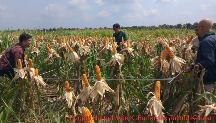 Divisinews.com // BANYUASIN – Atas perintah Kapolsek Talang Kelapa, Bhabinkamtibmas Polsek Talang Kelapa Brigadir Hartadi Ade K mendampingi pihak BPS (Badan Pusat Statistik) bpk Bambang, pengecekan produktifitas tanaman jagung yang akan dipanen pada Jumat (8/8/2025)