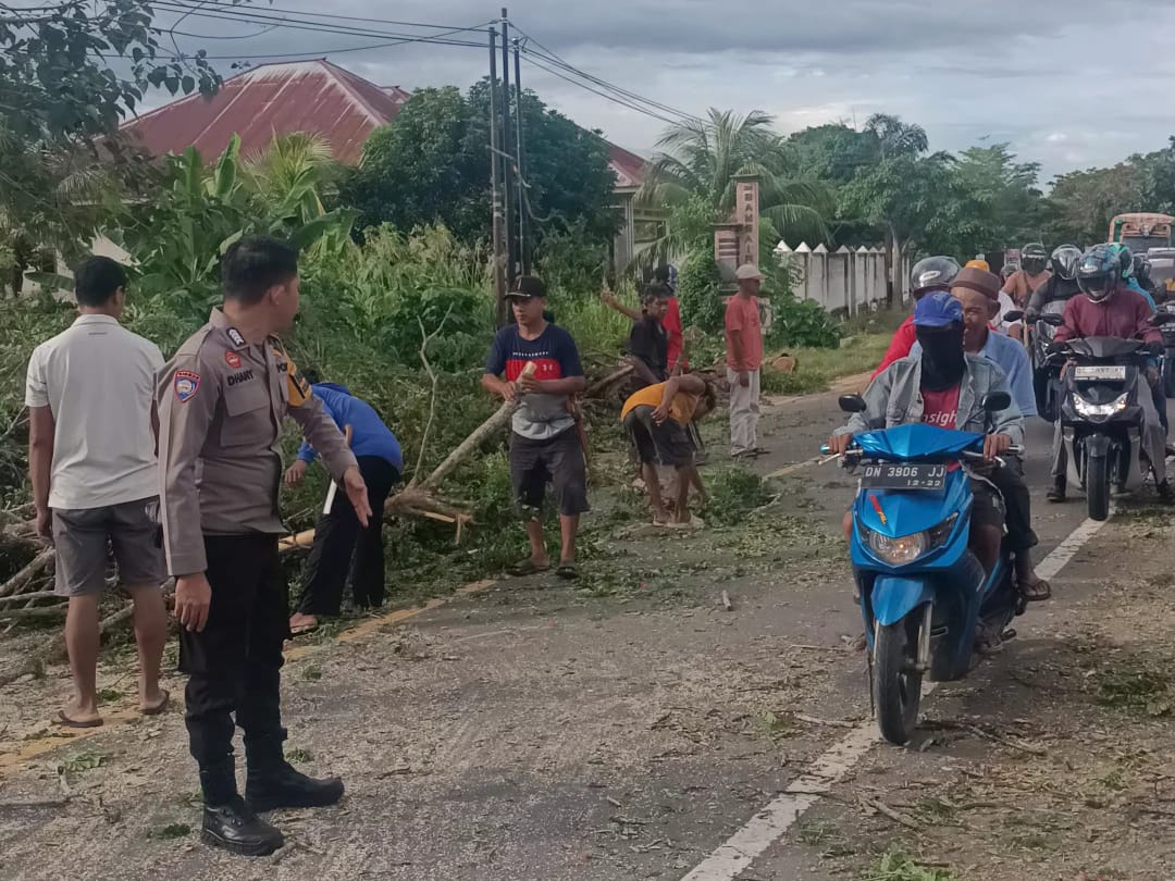 Kapolsek Bambalamotu IPTU Yauri Yusuf menyampaikan bahwa kegiatan ini merupakan bentuk respons cepat terhadap laporan masyarakat terkait kondisi pohon yang sudah lapuk dan sangat rawan tumbang, terutama saat angin kencang atau hujan deras melanda wilayah tersebut.