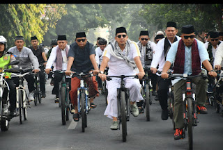 Uniknya, seluruh peserta gowes kompak mengenakan pakaian muslim.