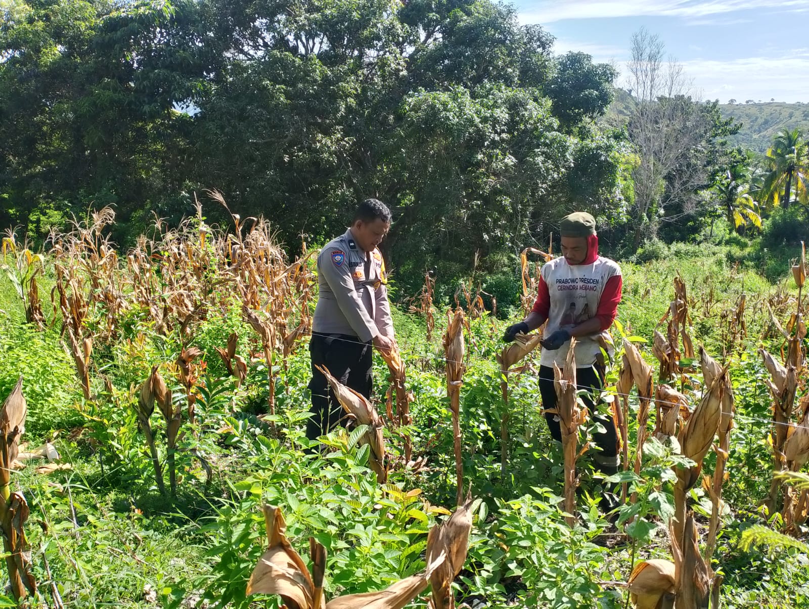 Kegiatan panen tersebut berlangsung penuh kebersamaan dan semangat gotong royong. Aipda Asrulla tampak berbaur dengan para petani, ikut memetik hasil jagung yang telah memasuki masa panen. Kehadirannya bukan hanya sebagai bentuk pendampingan, tetapi juga memberikan motivasi kepada petani agar terus meningkatkan produktivitas pertanian.