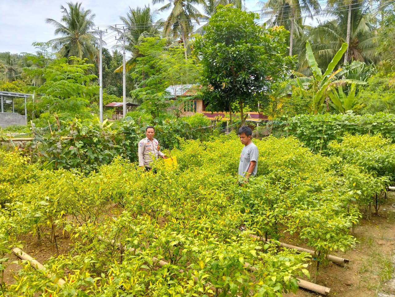 Kegiatan tersebut merupakan bagian dari peran aktif Bhabinkamtibmas sebagai penggerak ketahanan pangan di wilayah binaannya. Dengan turun langsung ke lapangan, Aiptu Muchlis Nur tidak hanya memastikan perkembangan tanaman cabai berjalan baik, tetapi juga memberikan motivasi serta pendampingan kepada warga agar terus semangat mengelola lahan secara produktif.