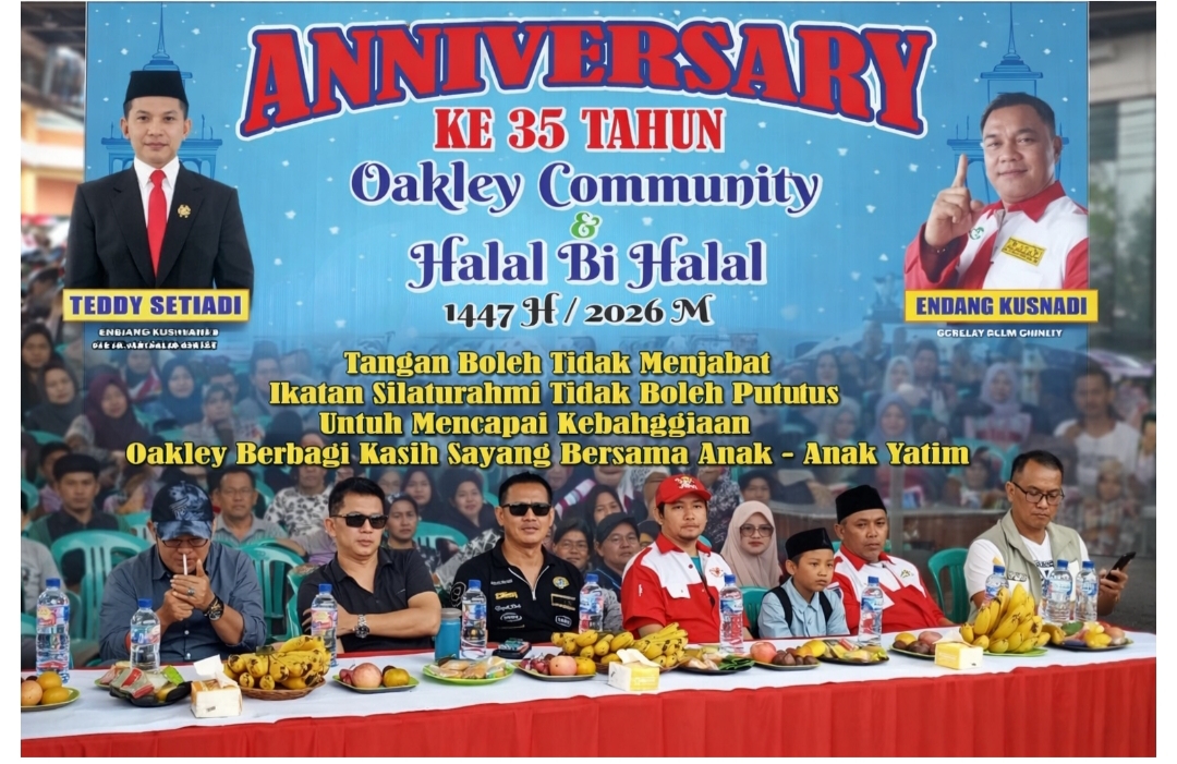 Sukabumi, divisinews.com//Perayaan Anniversary ke-35 Oakley Community yang dirangkaikan dengan kegiatan Halal Bihalal 1447 H/2026 M berlangsung meriah dan penuh khidmat pada Sabtu (4/3/2026). Acara ini menjadi momentum penting dalam mempererat tali silaturahmi antaranggota komunitas, sekaligus memperkuat kebersamaan dengan masyarakat luas.