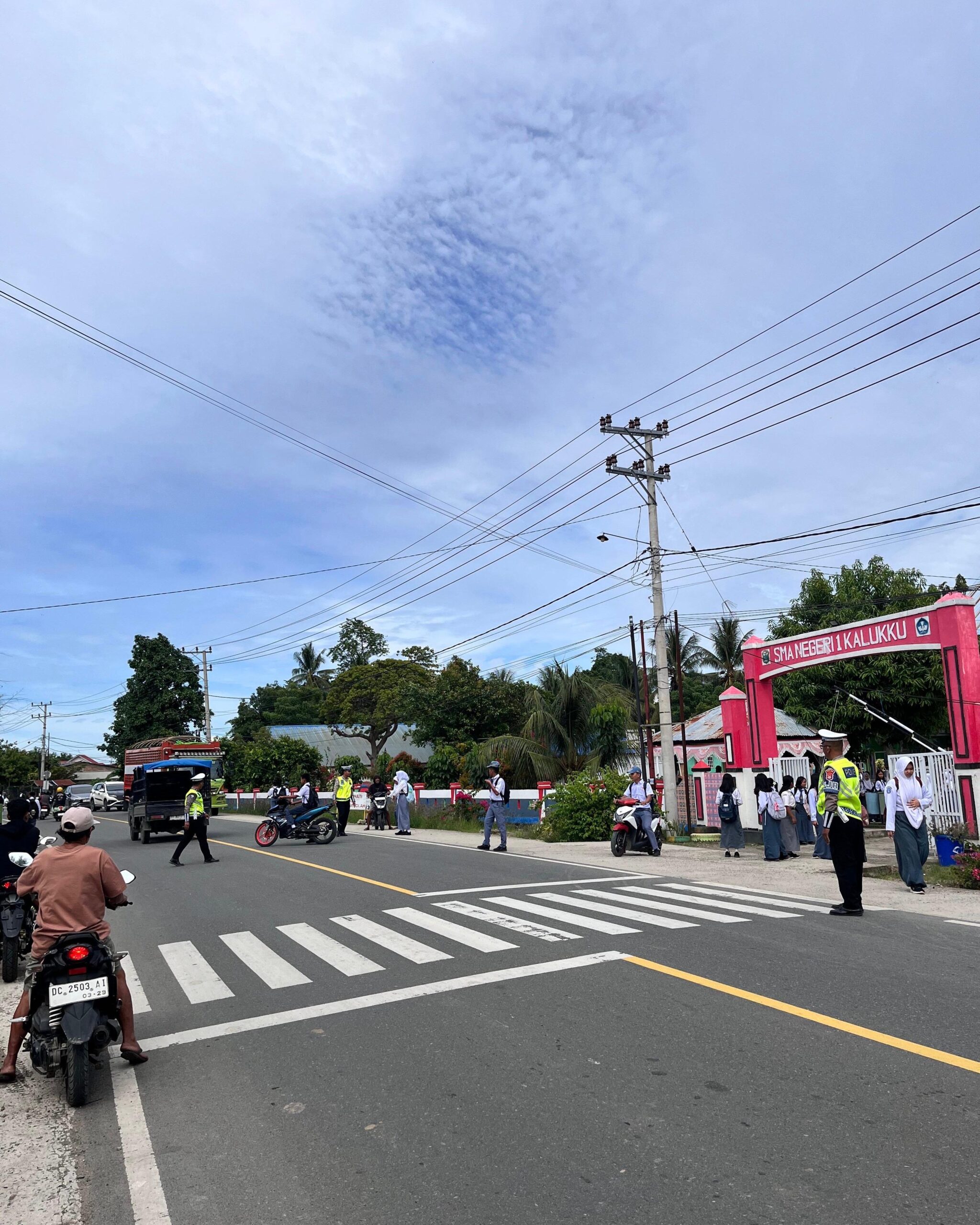Kegiatan yang difokuskan di sekitar area sekolah, SMAN 1 Kalukku ini, Senin (6/4/26). Personel memberikan pemahaman mengenai pentingnya mematuhi aturan lalu lintas, mulai dari penggunaan helm standar nasional, kelengkapan surat kendaraan, hingga sikap berkendara yang aman dan sopan di jalan raya.