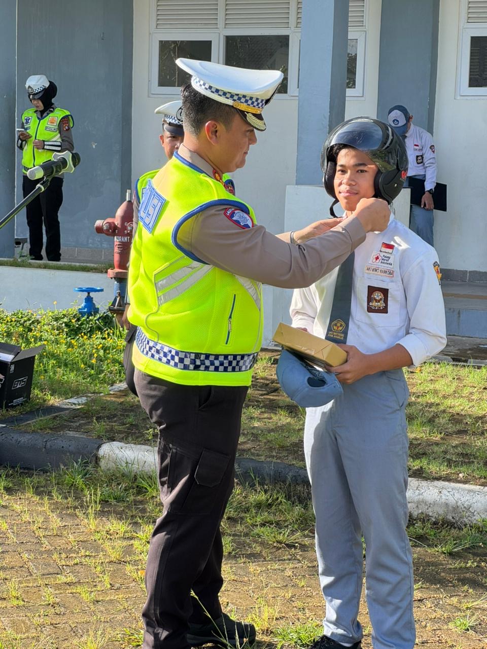 Dalam sambutannya, petugas menekankan pentingnya menggunakan helm yang memiliki Standar Nasional Indonesia (SNI), memastikan kelengkapan perlengkapan pada kendaraan bermotor, serta mematuhi seluruh peraturan tata tertib berlalu lintas untuk menjaga keselamatan diri dan orang lain di jalan raya.