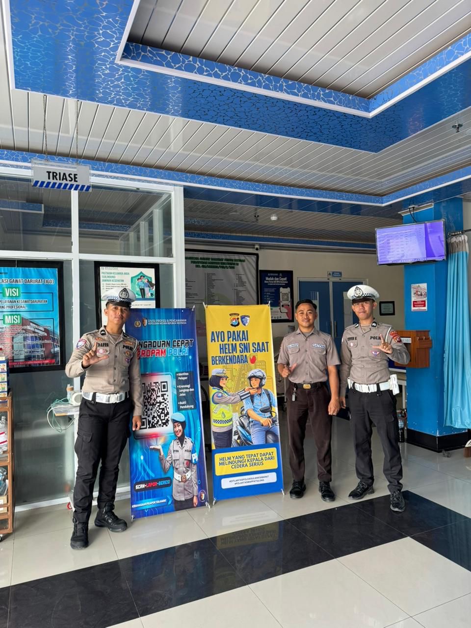 – Banner Tata Tertib Berlalu Lintas, Menyajikan informasi praktis tentang peraturan lalu lintas yang sering dilanggar, seperti penggunaan helm standar nasional, patuhi lampu lalu lintas, tidak menggunakan ponsel saat berkendara, dan menjaga jarak aman antar kendaraan. Setiap banner juga dilengkapi dengan ilustrasi yang mudah dipahami oleh semua kalangan.