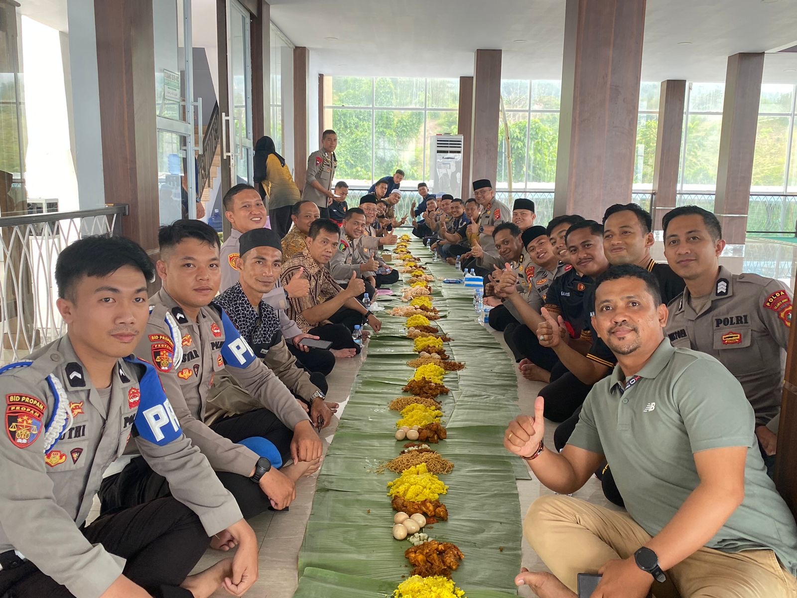 Acara kemudian dilanjutkan dengan makan bersama. Kapolda beserta para pejabat utama Polda Sulbar tampak berbaur dengan seluruh personel, menciptakan suasana keakraban dan mempererat tali persaudaraan. Momen ini menjadi simbol kebersamaan dan kekompakan dalam menjalankan tugas menjaga keamanan.