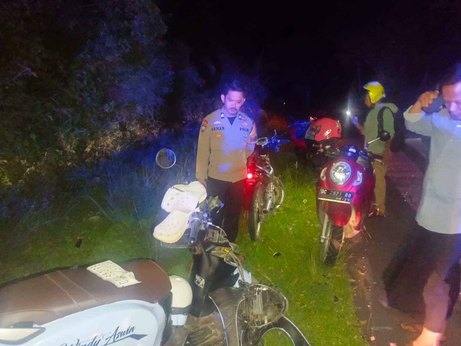 “Unit Laka Lantas Polres Majene telah mengamankan dua unit sepeda motor yang terlibat kecelakaan ke Mapolres Majene untuk kepentingan penyelidikan lebih lanjut. Dugaan awal, kecelakaan disebabkan oleh pengendara yang melaju dengan kecepatan tinggi dan kurang memperhatikan keselamatan saat melambung,” ujar IPTU Abdul Majid.