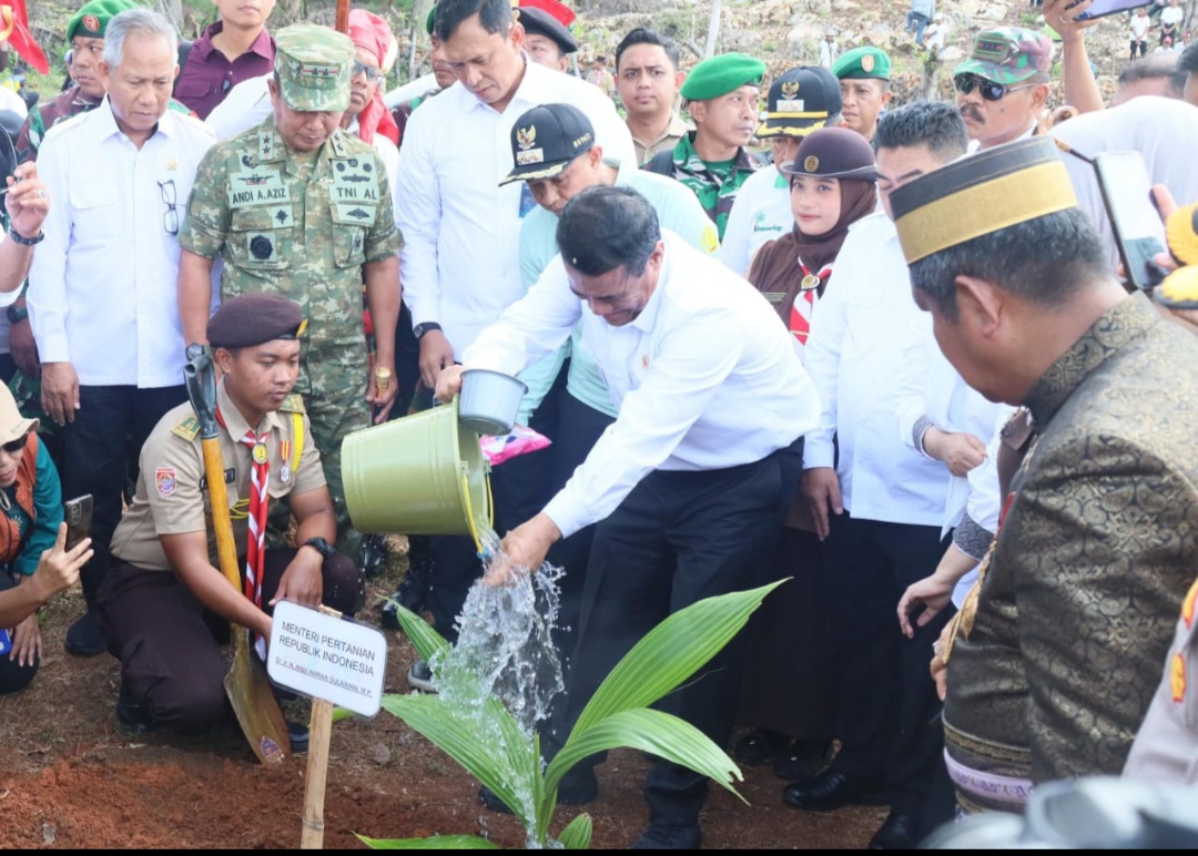 Divisinews.com//Selayar, Dalam rangka mendukung Program Strategis Nasional, Khususnya Program Hilirisasi Komoditi Unggulan, Komandan Komando Daerah TNI Angkatan Laut VI (Dankodaeral VI) Laksamana Muda TNI Andi Abdul Aziz, S.H., M.M mendampingi Menteri Pertanian Republik Indonesia (Mentan RI) Bapak Dr.Ir.H.Amran Sulaiman. MP. melaksanakan Lounching Gemerlap (Gerakan Menanam Lima Juta Kelapa) di Desa Mekar Indah Kec. Buki Kab. Kepulauan Selayar Propinsi Sulawesi Selatan , Sabtu (15/11/2025).