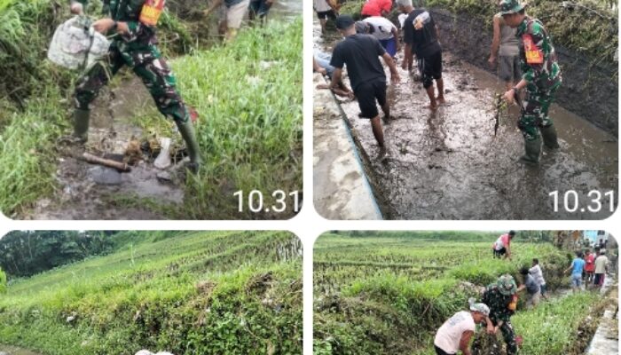 Dukung Sektor Pertanian, Babinsa Bersama Warga Gotong Royong Bersihkan Irigasi