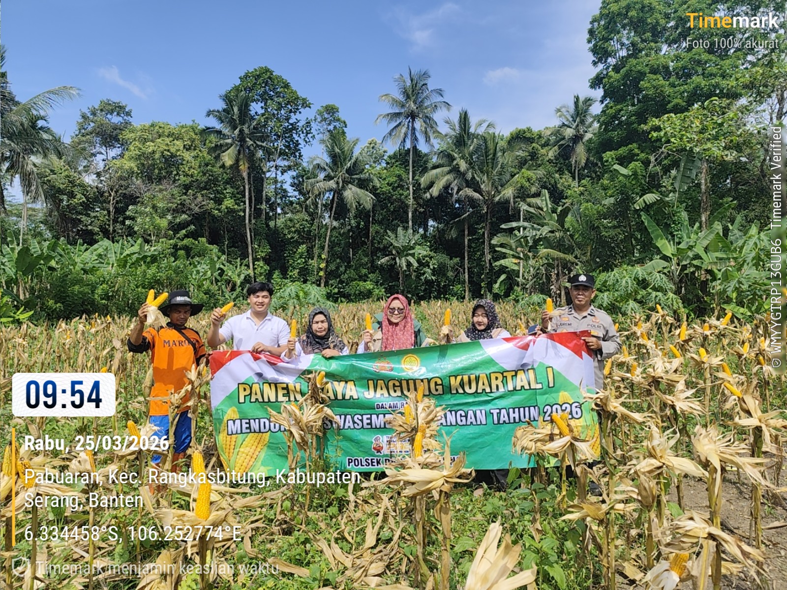 DivisiNews.Com||Lebak-Polsek Rangkasbitung Polres Lebak bersama Korwil BPP Pertanian Kecamatan Rangkasbitung,Pemerintahan Desa Pabuaran dan Kelompok Tani, melaksanakan kegiatan Panen Raya Jagung Kuartal I di Kampung Pulo, Desa Pabuaran, Kecamatan Rangkasbitung, Kabupaten Lebak.Rabu (25/03/2026).