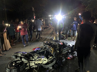 Seorang warga yang menyaksikan usai kejadian menambahkan, dua pengendara bermotor merek jupiter nmx dan vikson, diduga motor yg di kendarai korban atas nama (Martini )mengarah dri arah utara ke selatan sedangkan yg di kendarai korban (karmaruddin) yg berboncengan dengan korban (leo ) mengarah dari selatan ke utara, yg mengakibatkan dua korban meninggal di tempat dan satu meninggal di puskesmas.