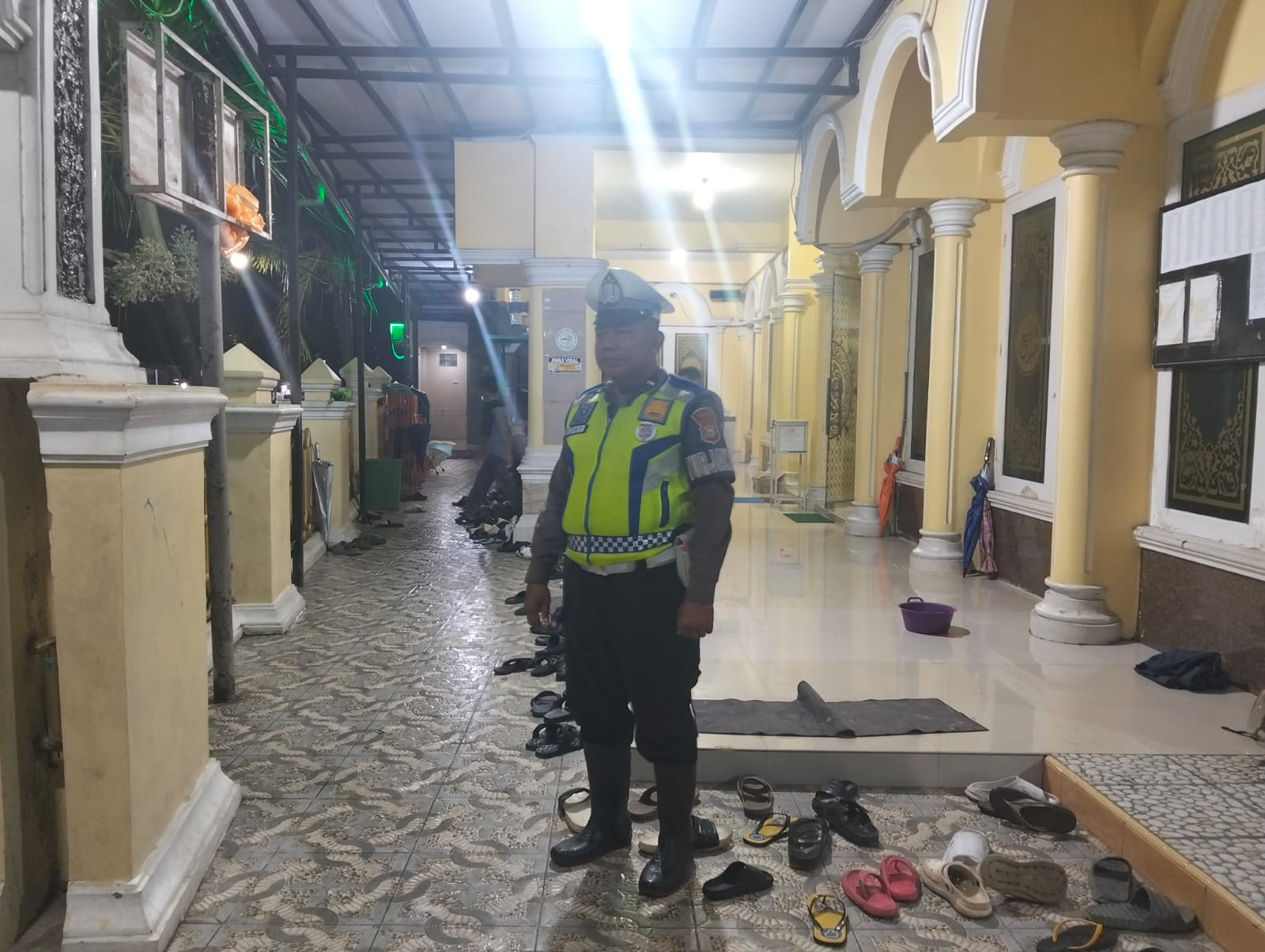 Saat lantunan ayat suci Al-Qur’an menggema dari dalam masjid dan tangan-tangan terangkat memanjatkan doa, para personel kepolisian tetap siaga di luar, memastikan keamanan dan ketertiban tetap terjaga. Di tengah kesyahduan malam, mereka menjalankan tugas dengan niat pengabdian, agar masyarakat dapat beribadah dengan hati yang tenang dan khusyuk.