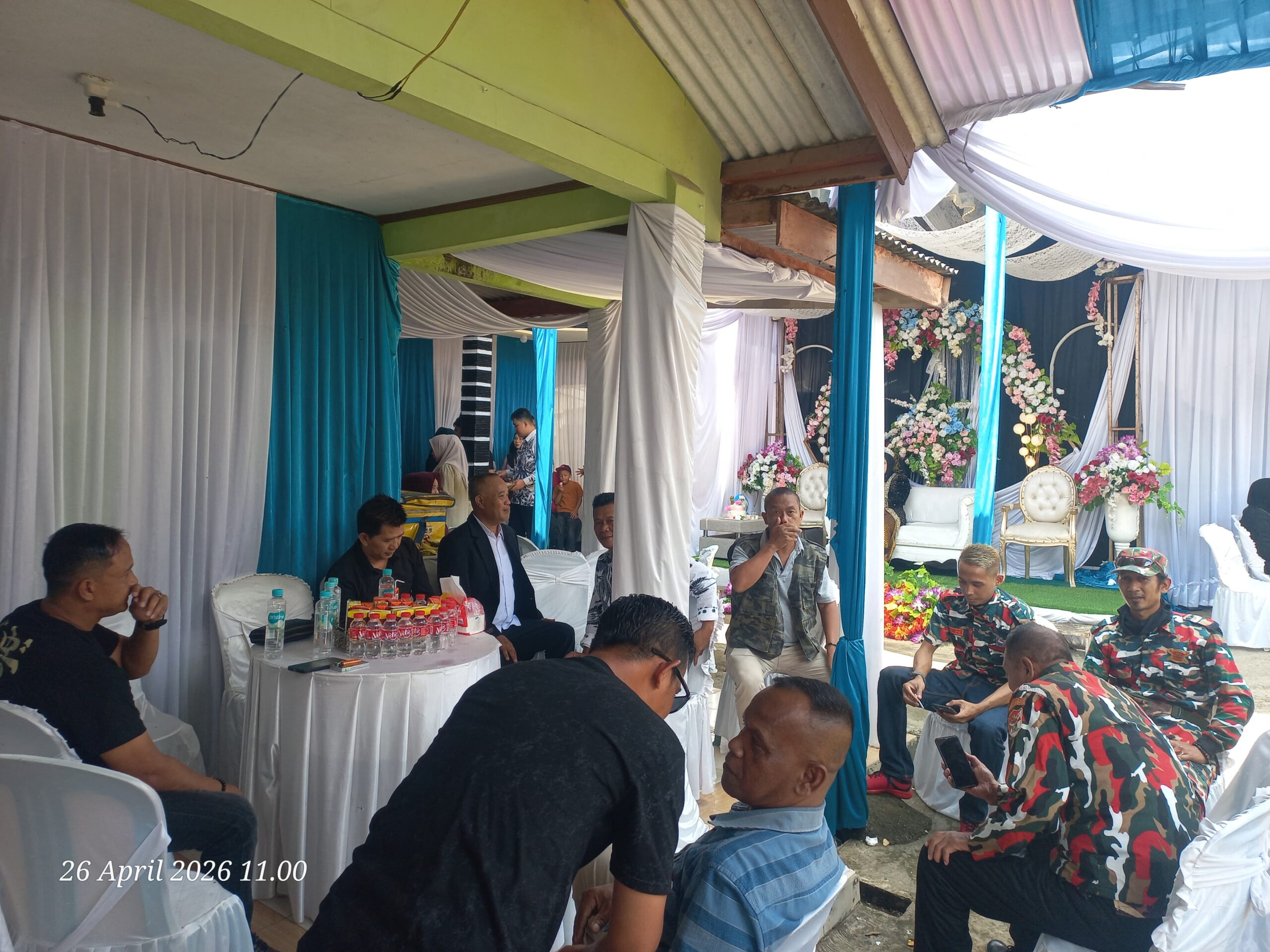 Usai prosesi akad, acara dilanjutkan dengan resepsi pernikahan yang dihadiri oleh anggota LMPI dari berbagai wilayah. Mereka tampak kompak mengenakan atribut organisasi sebagai bentuk solidaritas dan kebersamaan dalam mendukung salah satu anggotanya yang tengah berbahagia.