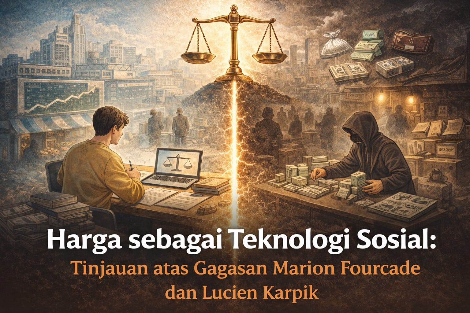 Dengan membaca Fourcade dan Karpik secara beriringan, kita melihat bagaimana logika harga tidak hanya bekerja di pasar komoditas, tetapi juga meresap ke dalam ruang-ruang yang sebelumnya dianggap otonom dari kalkulasi ekonomi, termasuk dunia ilmu pengetahuan. Fourcade menunjukkan bahwa harga bukan sekadar refleksi nilai, melainkan perangkat sosial yang sarat prasangka, kekuasaan, dan teknologi penilaian. Karpik, pada gilirannya, memperlihatkan bahwa ketika logika tersebut diterapkan pada produksi ilmiah, ia tidak pernah sepenuhnya mampu menangkap kualitas yang bersifat singular dan tak tereduksi.