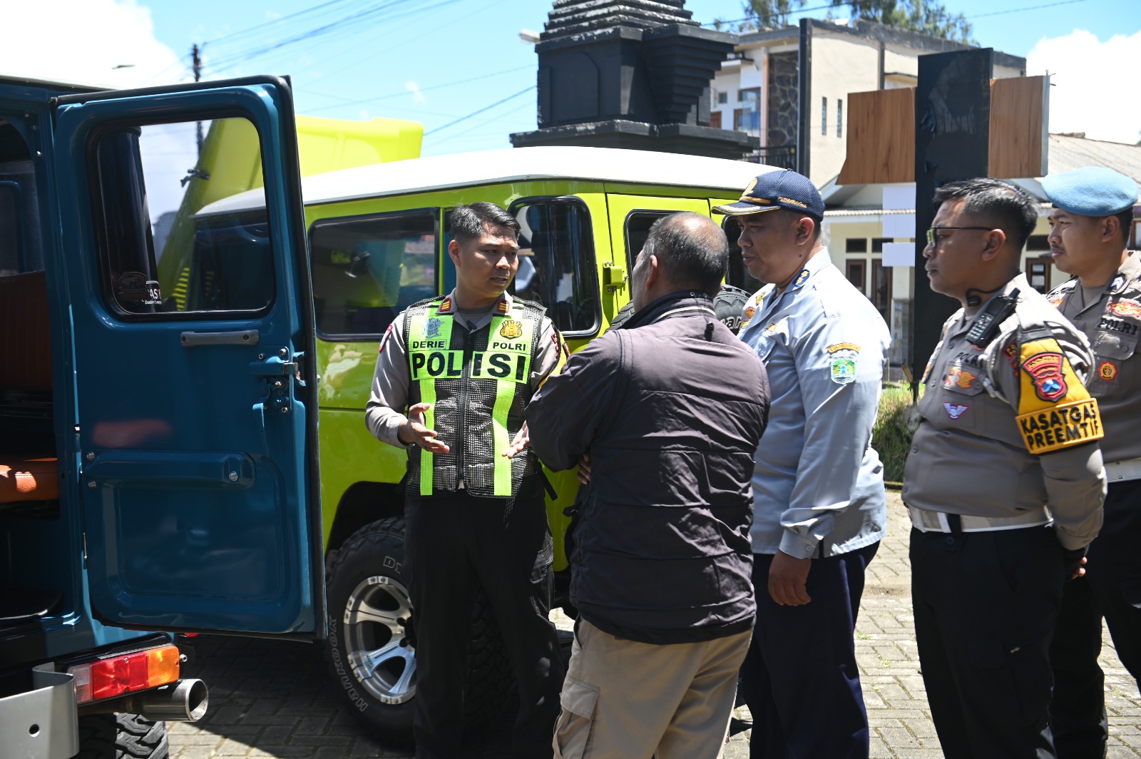 Dalam pemeriksaan tersebut, petugas melakukan pengecekan kondisi teknis kendaraan, kelengkapan administrasi, serta legalitas pengemudi jeep wisata yang akan mengangkut wisatawan menuju kawasan Taman Nasional Bromo Tengger Semeru.