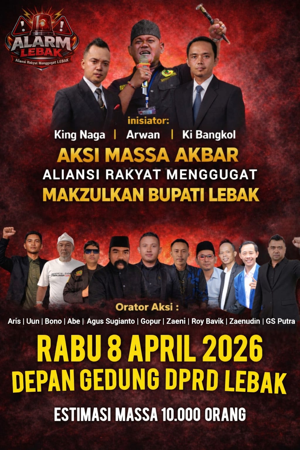 “Kita telah melakukan Rapat Konsilidasi antar Inisiator Gerakkan, Flyer kita sudah tayang soal Rencana Aksi untuk mengajak seluruh warga Lebak bersatu dalam menuntut keadilan. Aksi massa besar-besaran akan tetap digelar pada hari Rabu (08/4/2026) di depan Kantor Bupati Lebak, dengan tuntutan utama agar Bupati secara terbuka meminta maaf kepada rakyat dan menjalani proses pemakzulan sesuai dengan aturan hukum,” jelas Arwan.