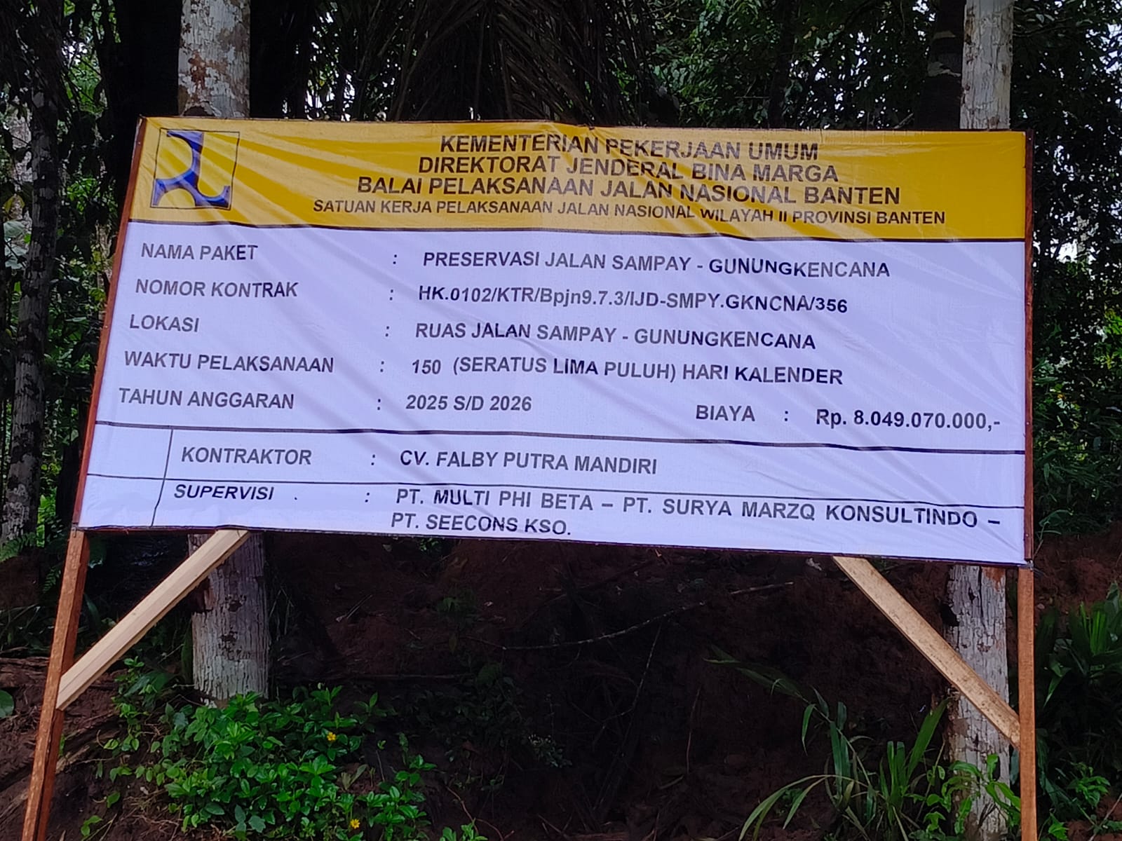 Proyek dengan nilai anggaran sebesar Rp8.049.070.000 tersebut dikerjakan oleh CV. Falby Putra Mandiri dengan pengawasan konsultan supervisi gabungan.