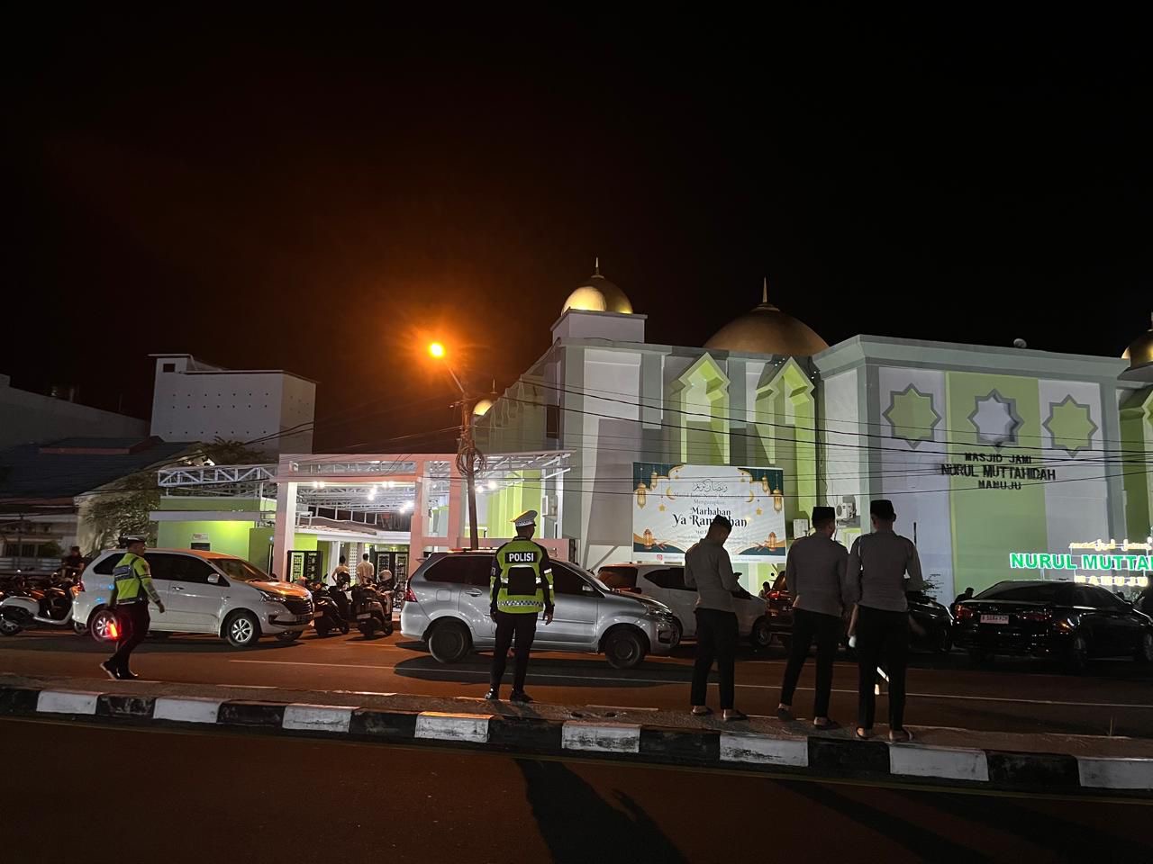 Kegiatan pengamanan difokuskan pada masjid-masjid yang menjadi tujuan utama banyak jamaah, seperti Masjid Raya Suhada, Masjid Ramah Musafir Jami Nurul Muttahidah (Pantai Manakarra) dan Masjid Ar Rahim Karema, Kamis (12/3/26).