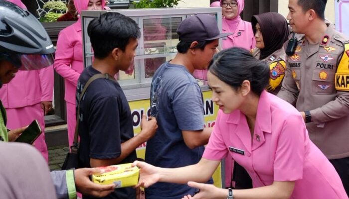 Seperti halnya dilakukan oleh Polsek Taman Polresta Sidoarjo bersama segenap anggota dan pengurus Bhayangkari di depan Mako Polsek Taman, Jumat (2/1/2026).