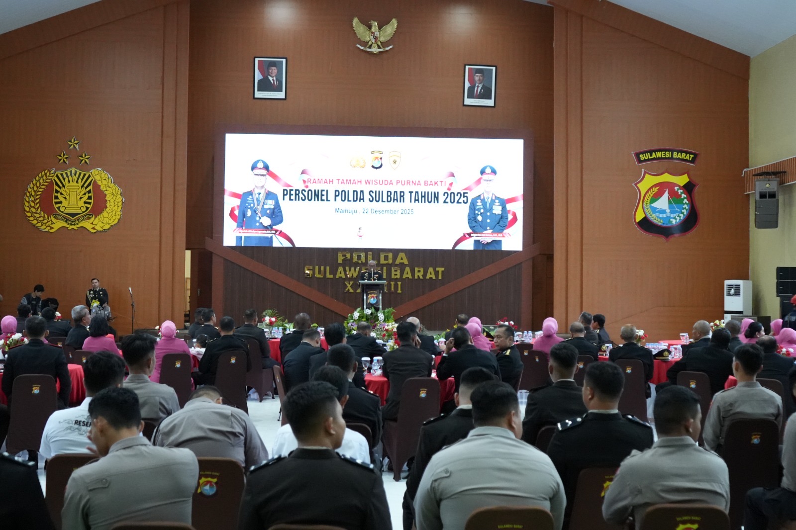 Divisinews.com, Sulawesi Barat– Kapolda Sulawesi Barat Irjen Pol Adi Deriyan Jayamarta memimpin acara wisuda purnabakti personel Polri Sulbar tahun 2025, sebagai bentuk penghormatan kepada para bhayangkara yang telah menyelesaikan masa pengabdiannya dengan penuh tanggung jawab, Senin (22/12/25) di Aula Marannu Mapolda.