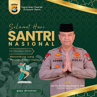 Divisinews.online, Sulawesi Barat – Selamat Hari Santri Nasional! Ucapan hangat ini tertuju kepada seluruh santri di wilayah Sulbar dan Indonesia, yang diungkapkan langsung oleh Kapolda Sulbar, Irjen Pol Adang Ginanjar, Selasa (22/10/24).