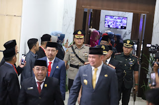 Devisinews.Online, -Kapolres Gowa AKBP R.T.S Simanjuntak, S.H., S.I.K., M.M., M.I.K didampingi Ketua Bhayangkari Cabang Gowa Ny. Lidya Reonald Simanjuntak menghadiri pelantikan dan pengambilan sumpah jabatan Anggota DPRD Kabupaten Gowa masa jabatan 2024-2029, pada Senin (9/9).