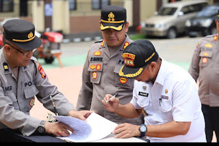 Divisinews.Online,- Kapolres Gowa, AKBP R.T.S Simanjuntak, S.H., S.I.K., M.M., M.I.K., memimpin upacara penyerahan bantuan hand traktor kepada perwakilan Bhabinkamtibmas Polres Gowa di Lapangan Griya Bhayangkara Polres Gowa, yang disertai penandatanganan berita acara serah terima antara Kapolres Gowa dan Kepala Dinas Tanaman Pangan dan Hortikultura Kabupaten Gowa, Rabu (13/11/2024).