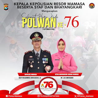 Divisinews.online, Mamasa – Kapolres Mamasa, AKBP Muhammad Amiruddin S.I.K, bersama Ketua Bhayangkari Cabang Mamasa, Ny. Lusi Amiruddin, menyampaikan ucapan selamat Hari Jadi Polwan yang ke-76 kepada seluruh Polisi Wanita (Polwan) di Indonesia. Terkhusus yang bertugas di Polres Mamasa, Minggu 1 September 2024